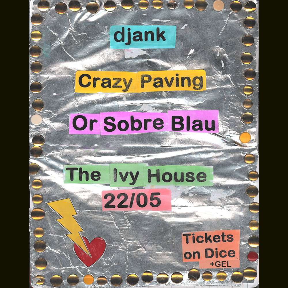 The Ivy House presents a night of incredible new music, with some of the most exciting new voices in the scene; djank, Crazy Paving and Or Sobre Blau!