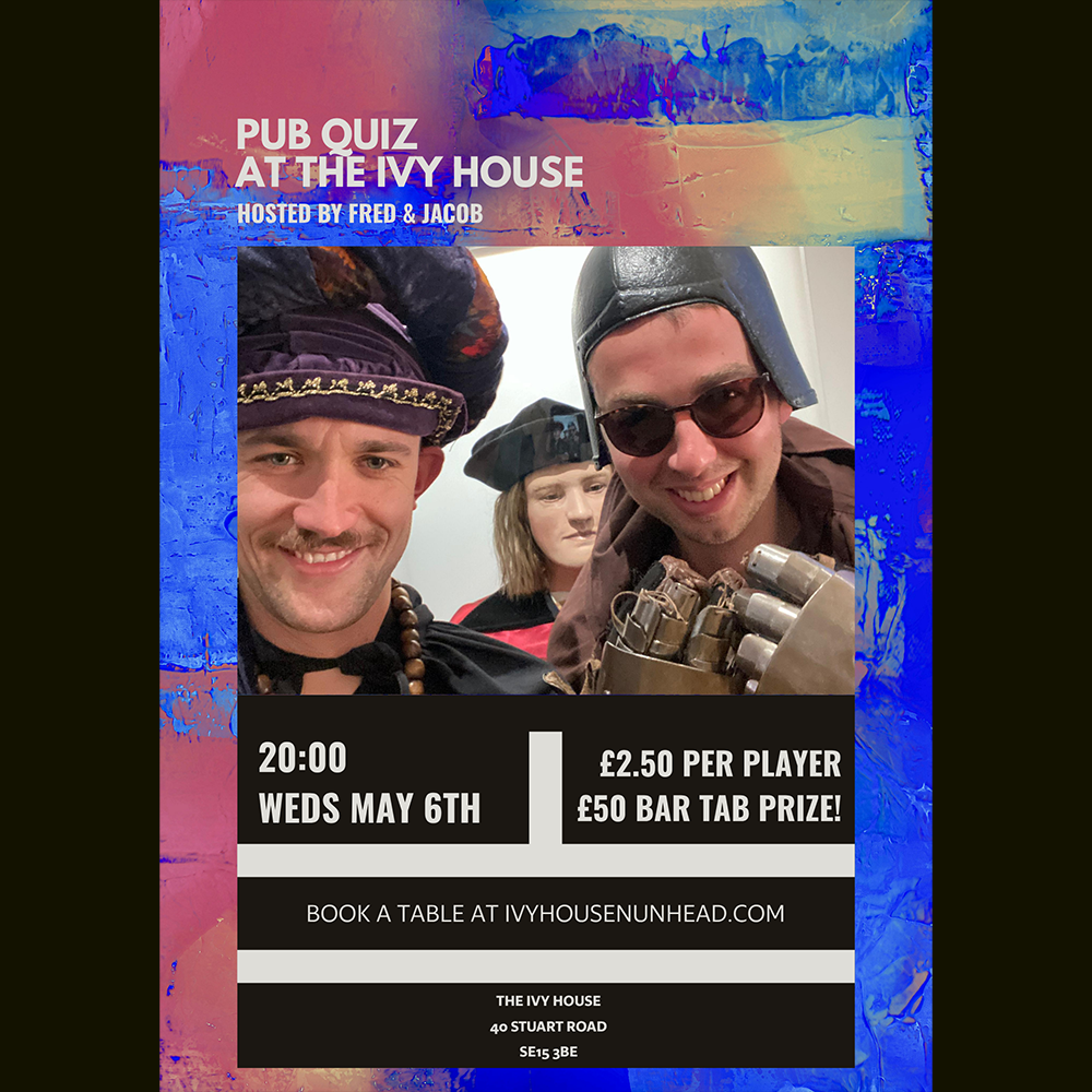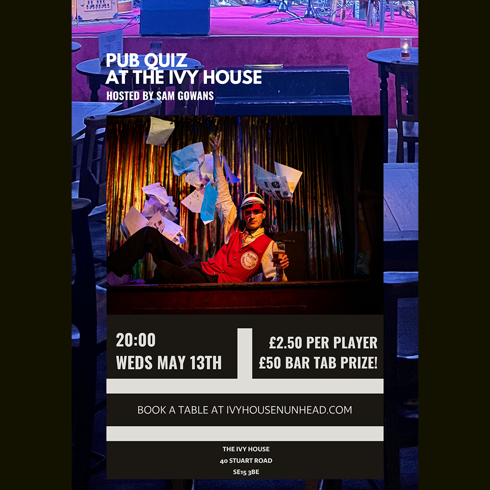 Hosted by Emmett Cruddas. Winning team takes home a £50 bar tab!