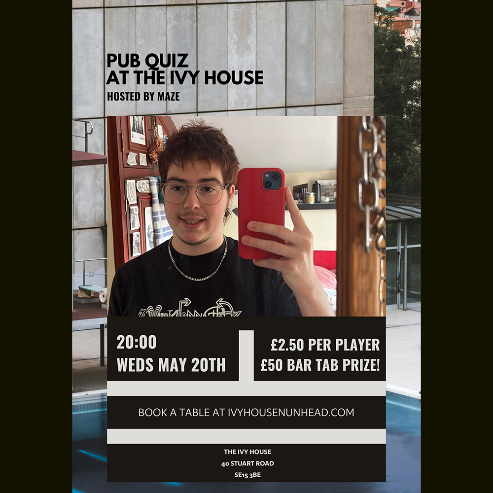 with Quizmaster Maze. Winning team takes home a £50 bar tab!